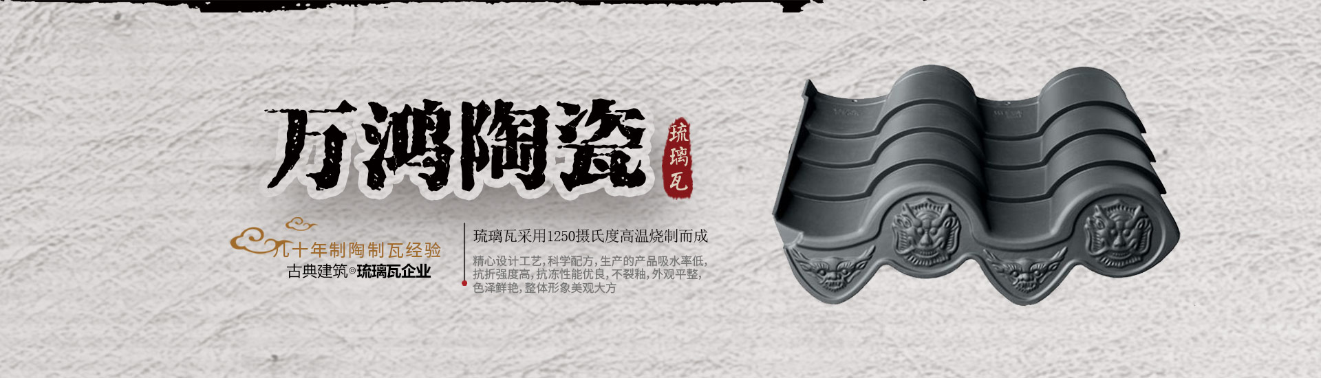 宜興市萬鴻陶瓷有限公司是國內生產古建琉璃瓦企業(yè),也是宜興市琉璃瓦行業(yè)龍頭骨干企業(yè)。琉璃瓦采用1250攝氏度高溫燒制而成,公司座落經濟發(fā)達的宜興市丁山鎮(zhèn),臨近寧杭高速公路、新長鐵路、錫宜高速和104國道,交通十分便利。 萬鴻陶瓷擁有幾十...
